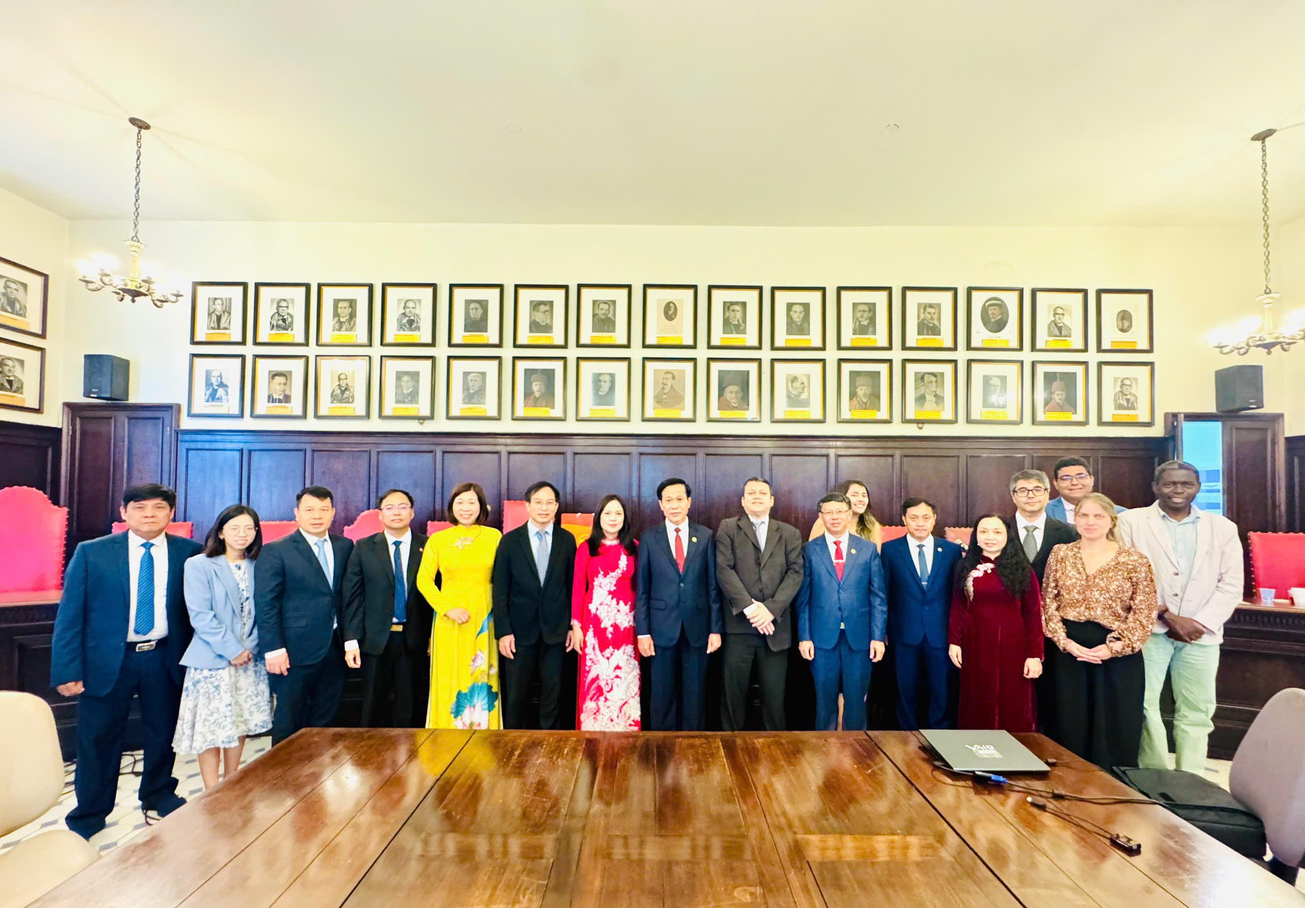 Làm việc và trao đổi học thuật tại Đại học Liên bang Rio de Janeiro (UFRJ) Ngày 28/10, Đoàn đã có buổi làm việc chính thức với Đại học Liên bang Rio de Janeiro (UFRJ) - trường đại học công lập lớn nhất và có uy tín hàng đầu tại Brasil, nơi quy tụ hơn 69.000 sinh viên, 4.000 giảng viên và 100 chương trình sau đại học. Buổi làm việc diễn ra tại Trường Luật Quốc gia (Faculdade Nacional de Direito – FND), trong không khí trọng thị và hữu nghị, với sự đón tiếp của Giáo sư Marilson dos Santos Santana - Hiệu trưởng, cùng đại diện lãnh đạo và các giáo sư đầu ngành của trường.